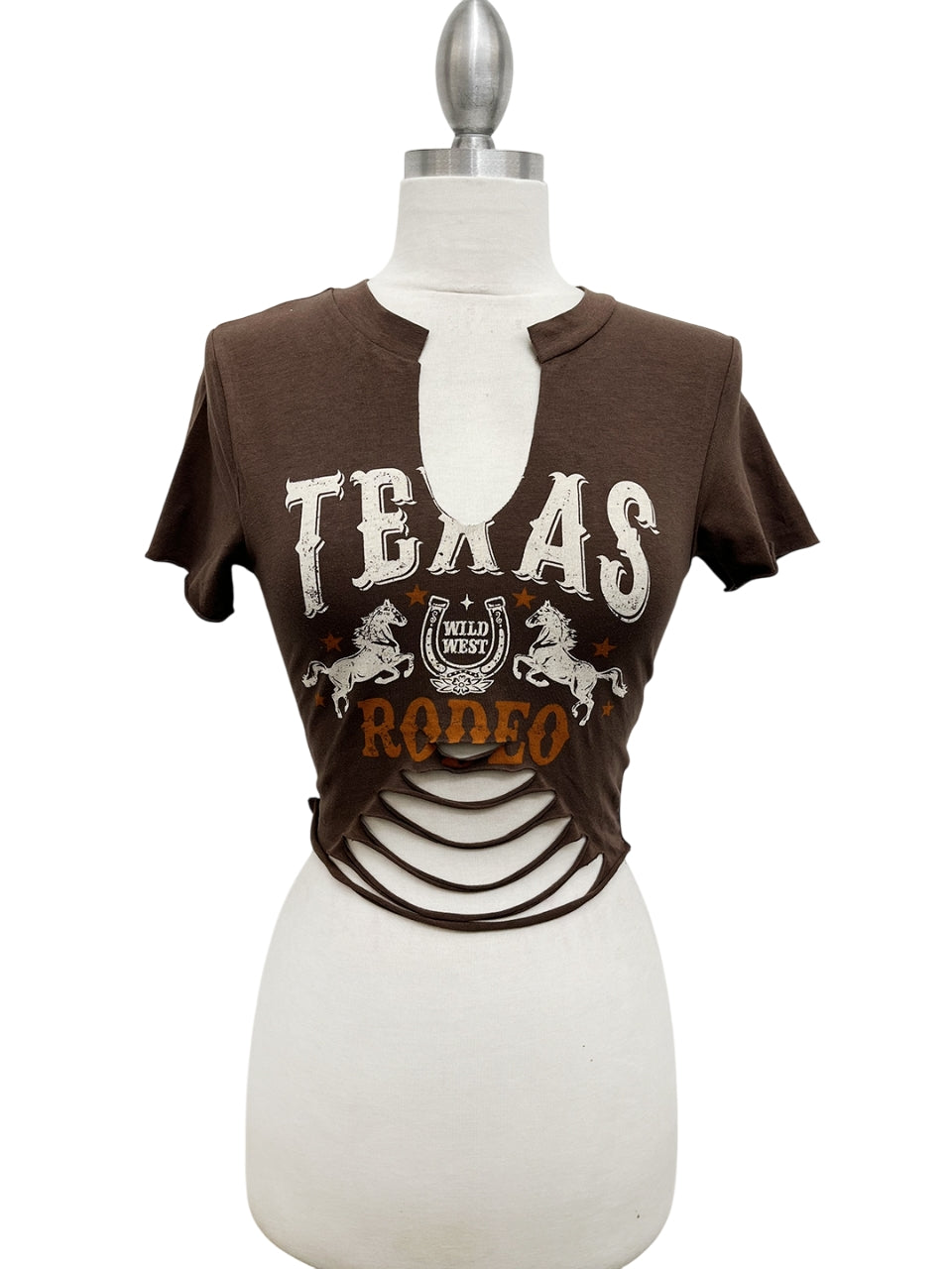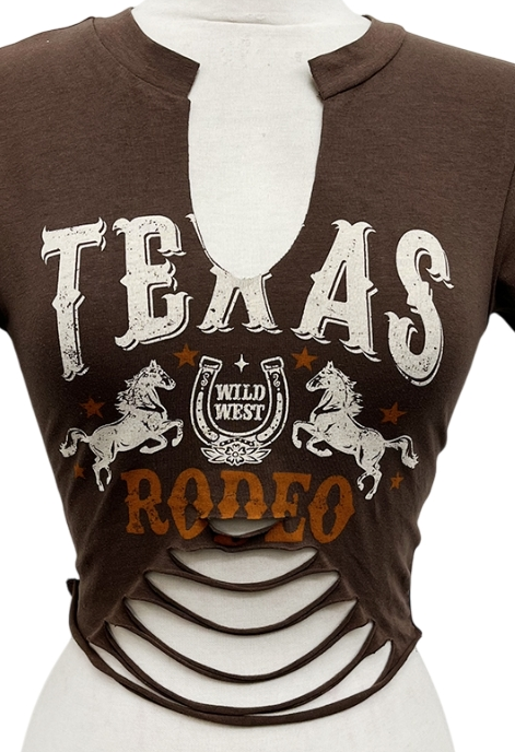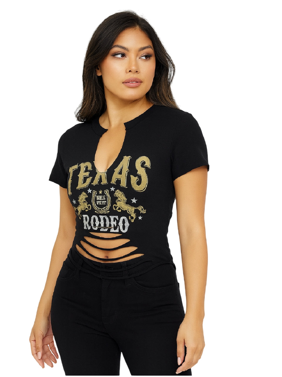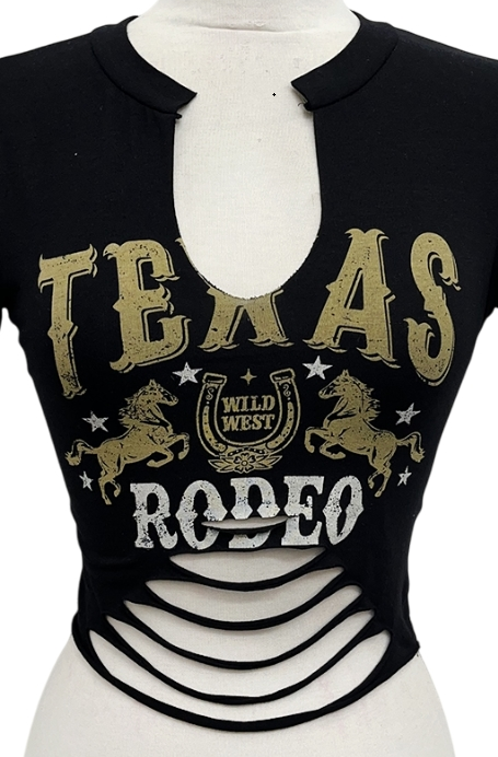 TEXAS PRINT LASER CUT SHORT SLEEVE TOP