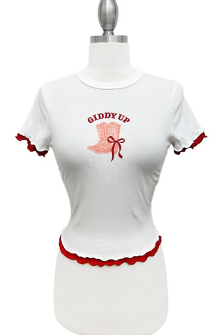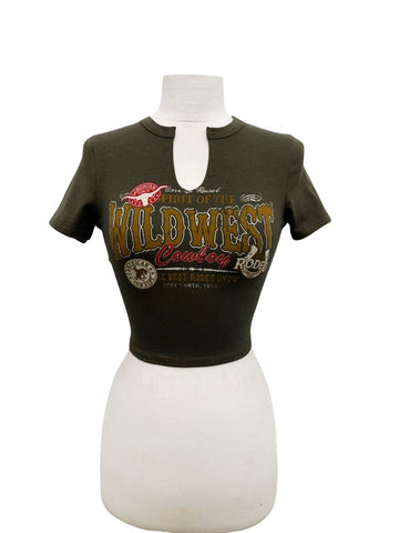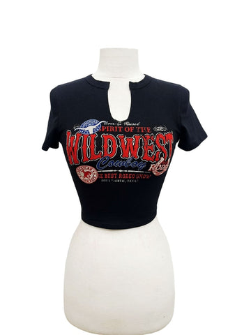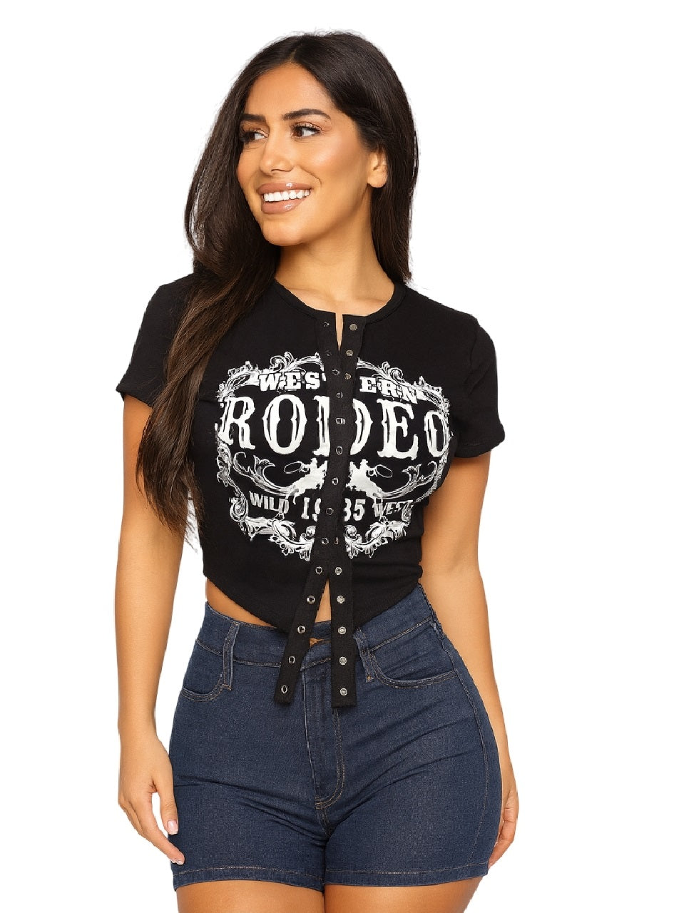 WESTERN RODEO GRAPHIC BUTTON TRIM FRONT TOP