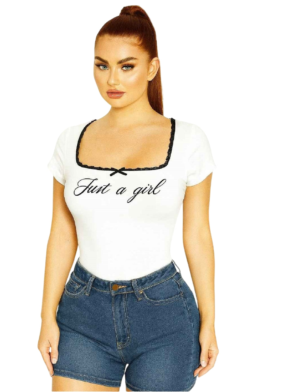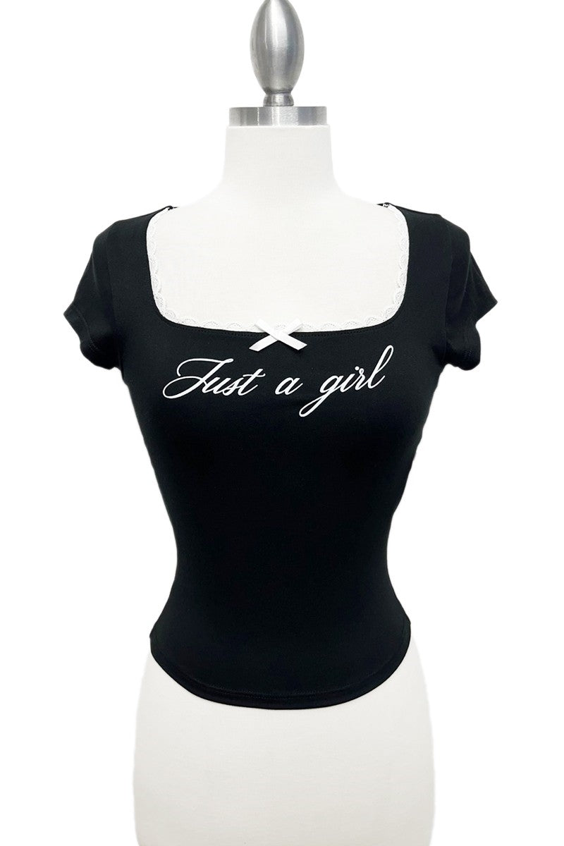 JUST A GIRL GRAPHIC SHORT SLEEVE TOP