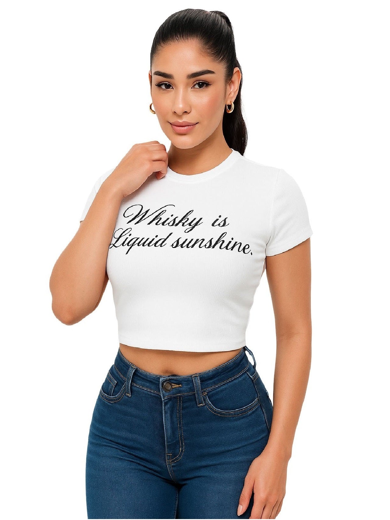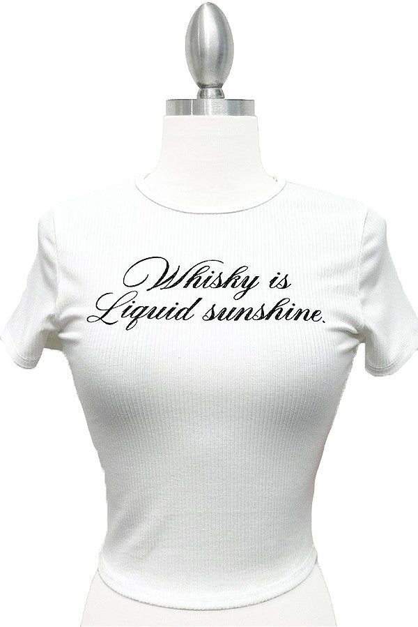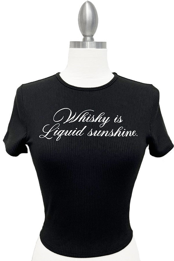 WHISKY IS LIQUID SUNSHINE LETTER PRINT RAYON TOP