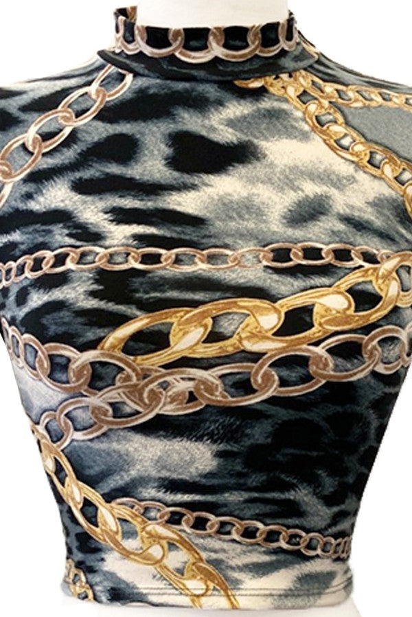 CHAIN PRINT MOCK NECK LONG SLEEVE TOP