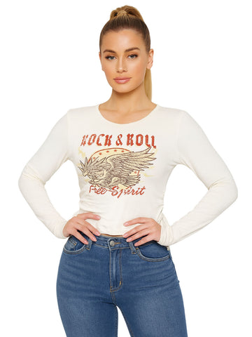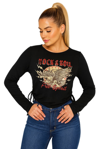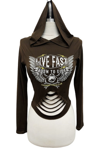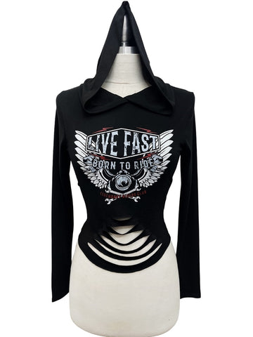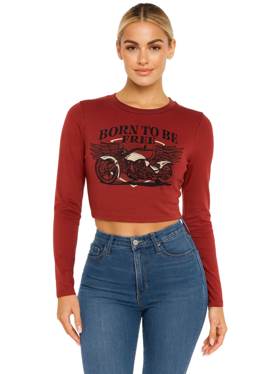BORN TO BE FREE MOTORCYCLE PRINT LONG SLEEVE TOP