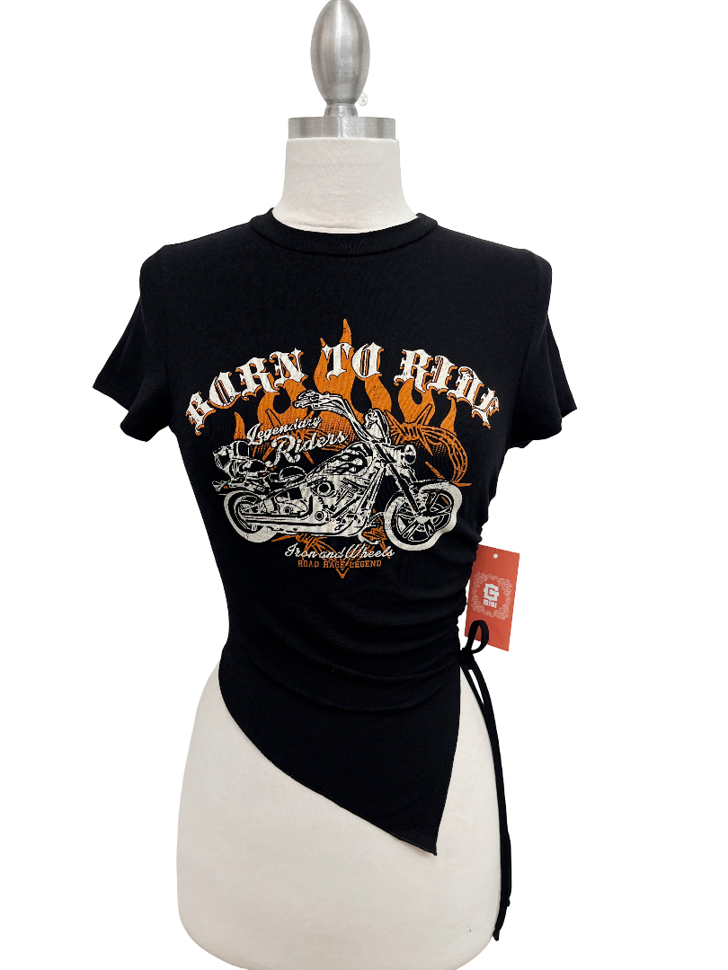 LEGENDARY MOTORS GRAPHIC SHORT SLEEVE CONTRAST STITCH DETAIL TOP