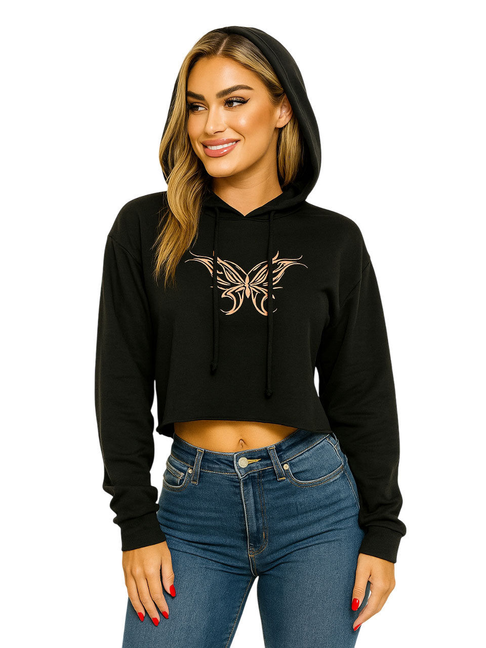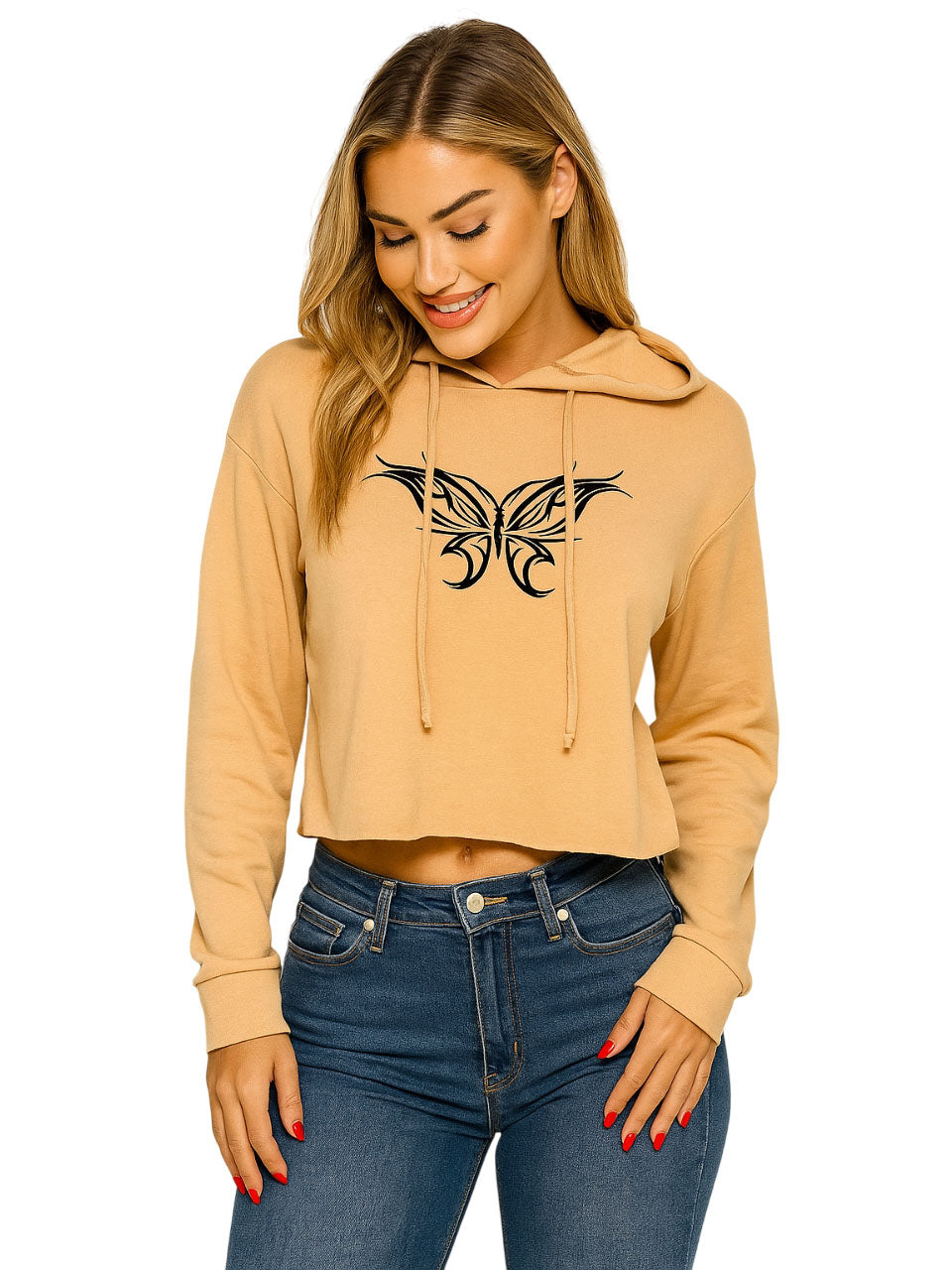 BUTTERFLY GRAPHIC COPPED BOXY HOODIE