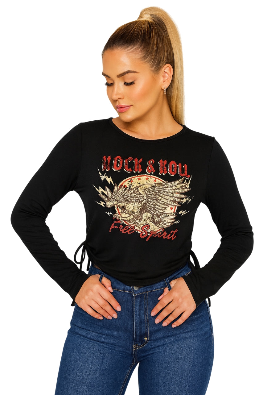 ROCK & ROLL FREE SPIRIT EAGLE PRINT LONG SLEEVE TOP